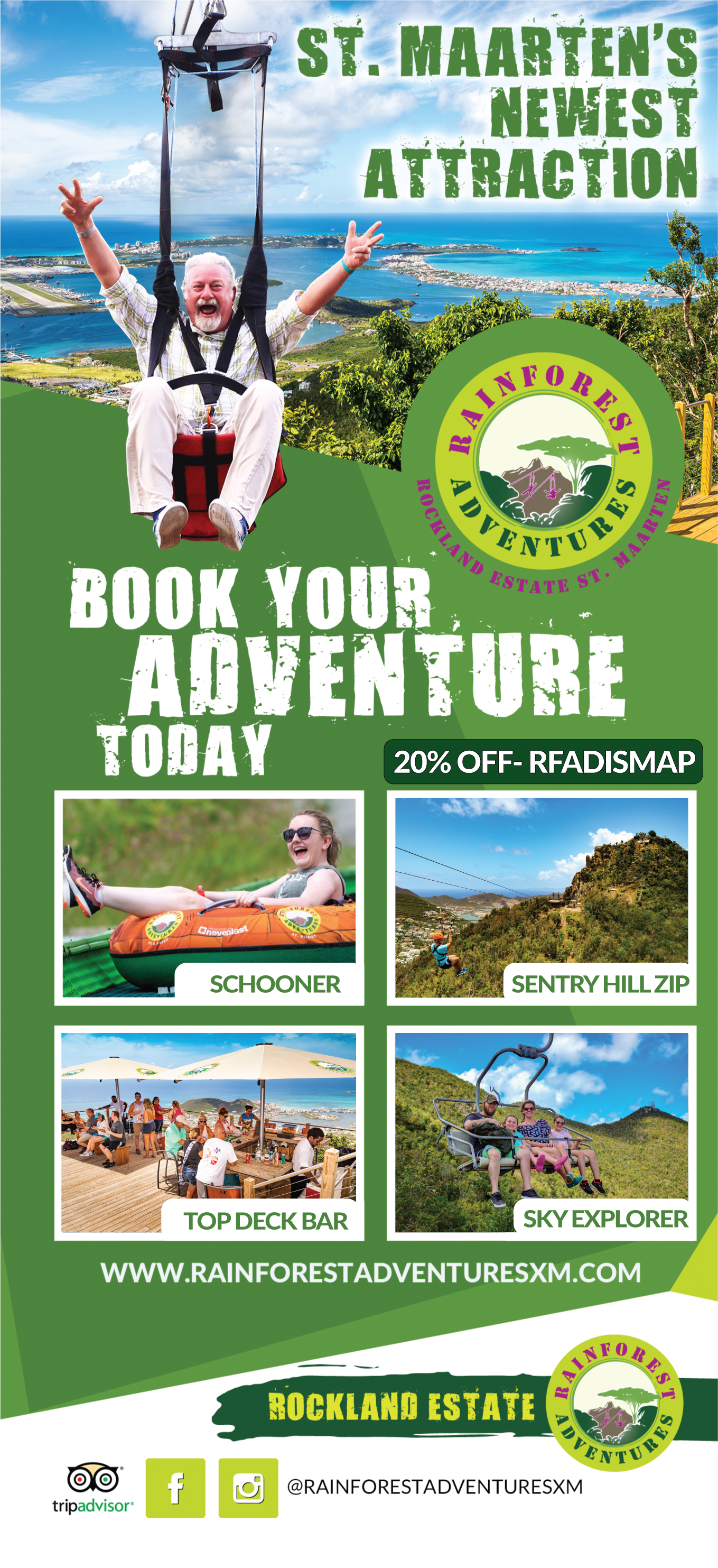 Vous pouvez également visiter une île voisine comme Anguilla par ferry pour une expérience unique comme nager avec les dauphins. Si vous préférez rester sec vous avez le choix entre une partie de golf à Mullet Bay Golf, une petite balade dans les nombreuses rues offrant du shopping des deux côtés de l’île, ou un tour de zipline entre deux montagnes (une tyrolienne ou Zipline est un câble tendu entre 2 points qui permet de les relier grâce à un systéme mécanique spécial qui vous fera traverser ou survoler de magnifiques points de vue sans grandes difficultés). Lotterie Farm du côté français ou Rainforest Adentures du côté hollandais offrent le zipline.
